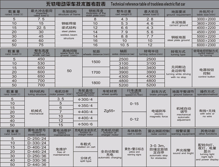 無(wú)軌電動(dòng)平車(chē)又被稱(chēng)為過(guò)跨車(chē)或者電動(dòng)搬運車(chē)是一種能夠通過(guò)人工操控任意轉向的輪式搬運設備,因為它采用高強度的聚氨酯橡膠輪做為驅動(dòng)輪和承載輪,擺脫了軌道車(chē)對地面軌道的依賴(lài)性,不破壞基建可以直接在地面行走。隨意轉向不受空間和地面的限制,隨時(shí)可以改變行走方向和路線(xiàn),非常適在運行路線(xiàn)不固定的現場(chǎng)使用。無(wú)軌電瓶車(chē)可360度錄活轉彎、具備前進(jìn)、后退、左轉、右轉按鈕、調速按鈕、急停按鈕、異常燈指示、通過(guò)燈指標、權限鑰匙等控制按鈕。無(wú)軌電瓶車(chē)憑借操作簡(jiǎn)單、轉彎行駛平穩、易維護等優(yōu)點(diǎn)贏(yíng)取不少企業(yè)廠(chǎng)家的青睞。其噸位、臺面尺寸、供電方式、技術(shù)要求均可非標定制。
